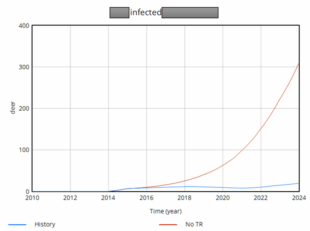 It turns out there is some in this case. Here are the histories of two regions that received different CWD management treatments, and had wildly different outcomes: